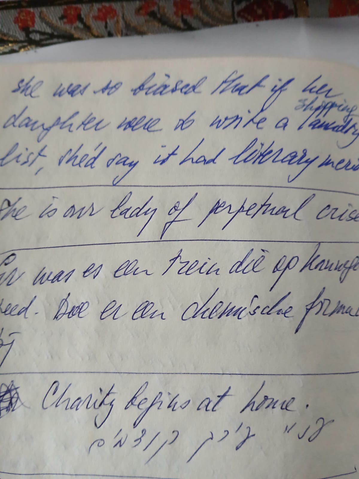 Ja, schrijven is mijn therapie, maar niet in de zin van het verwerken van oud trauma. Ik schrijf dingen van me af waarover ik ongelukkig ben of die me irriteren, en ik schrijf ook over zaken die ik belachelijk of juist heel leuk vind. Ik schrijf omdat ik anders teveel zou huilen. Als het eenmaal op papier staat, voel ik me beter.